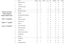 Table and live scores of premier league.